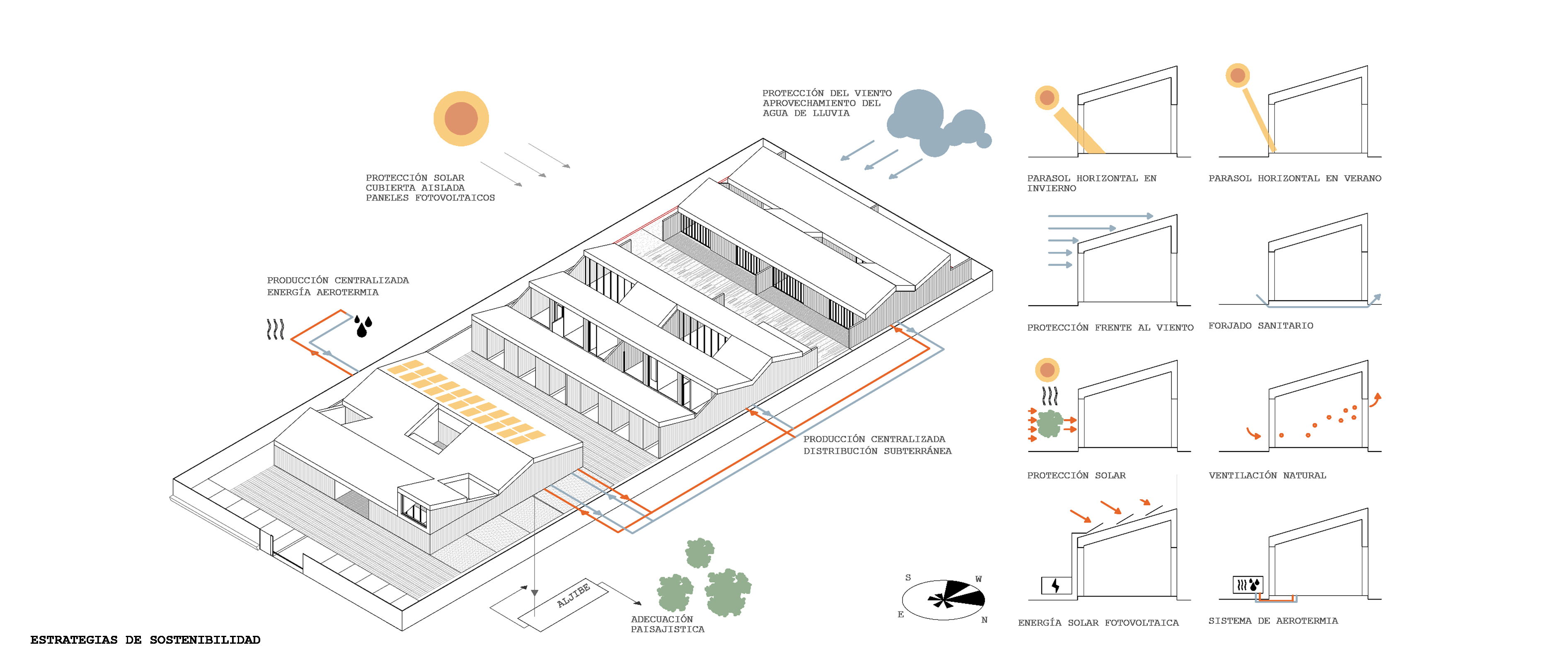 Finalmente es muy importante respetar un alto compromiso con la sostenibilidad mediante el empleo de estrategias pasivas y activas. Por ello el proyecto se plantea como un edificio de balance cero desde un punto de vista energético.