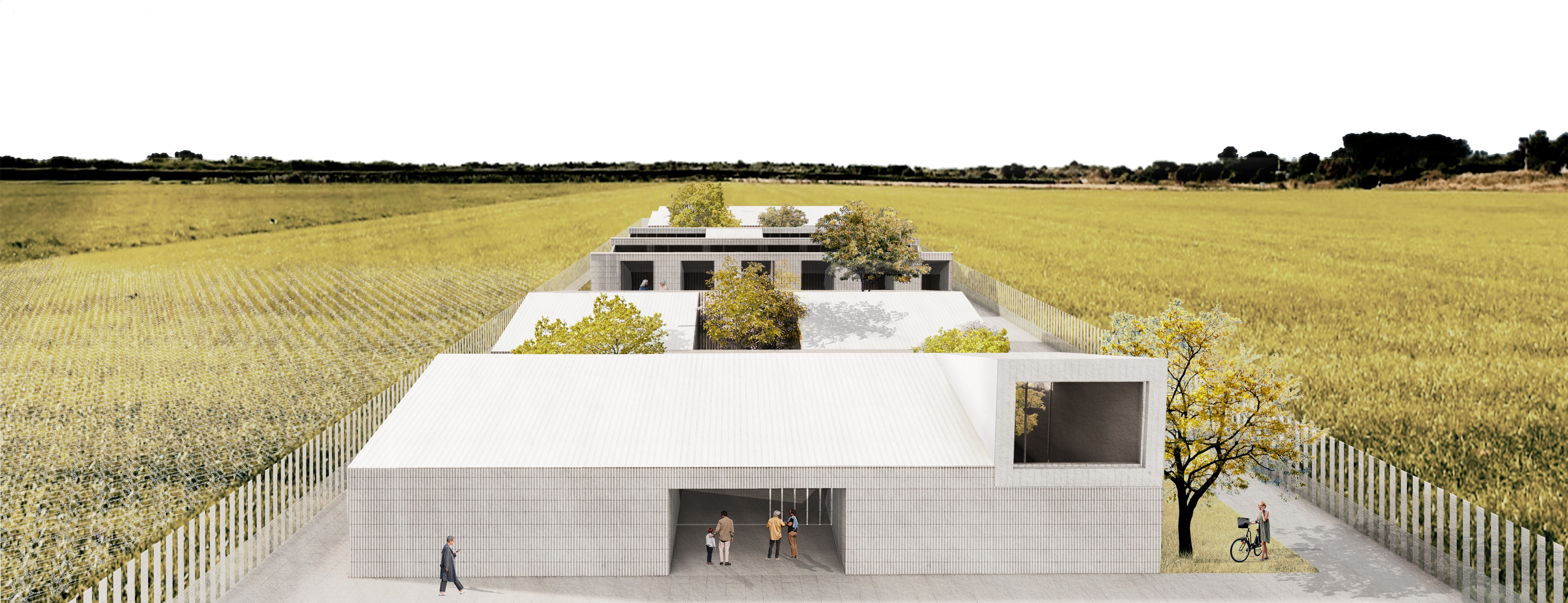 El paisaje castellano de Valladolid se define fundamentalmente por la presencia del horizonte. En el ámbito próximo de Aldeamayor de San Martín esto no es una excepción. Por ello en el proyecto se plantea como un recinto que se perfila frente a una definida línea del horizonte que todo lo abarca. De esta manera un concepto como el tapiz, atendiendo a cuestiones tanto de implantación como de edificación misma, materializada la idea seminal del proyecto, donde vacios y llenos actúan como elementos equivalentes y a la vez antagónicos.