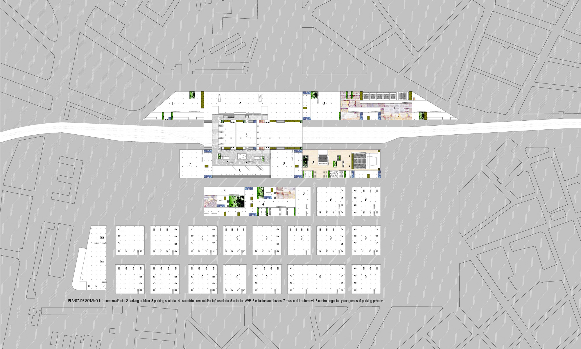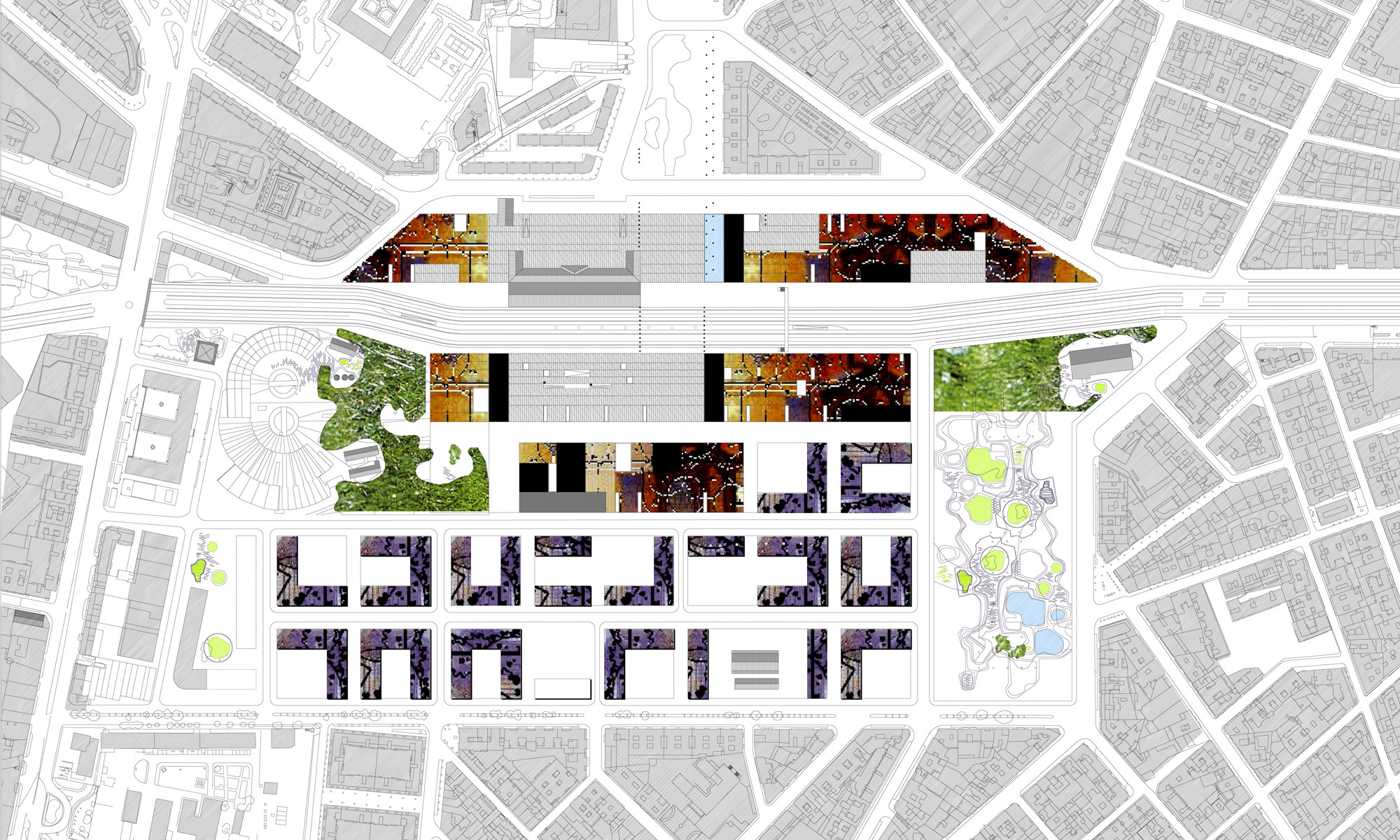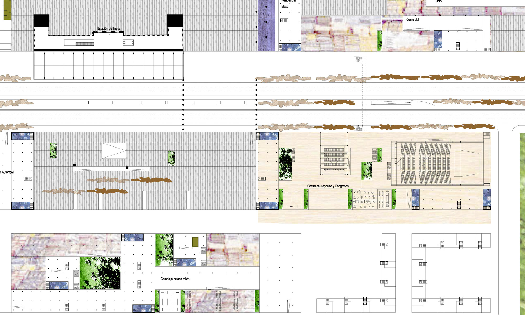 La residencia, equidistante entre los valores derivados de un arquetipo de ensanche y los asociados a un polígono, pretende suturar las heridas abiertas entre el área de proyecto y los barrios circundantes. Finalmente parece imprescindible la creación de un nuevo pulmón verde, diseñado como un relato capaz de posibilitar y contener una estructura de sucesos variada y que amortigua la densificada trama residencial característica del barrio de las Delicias.
