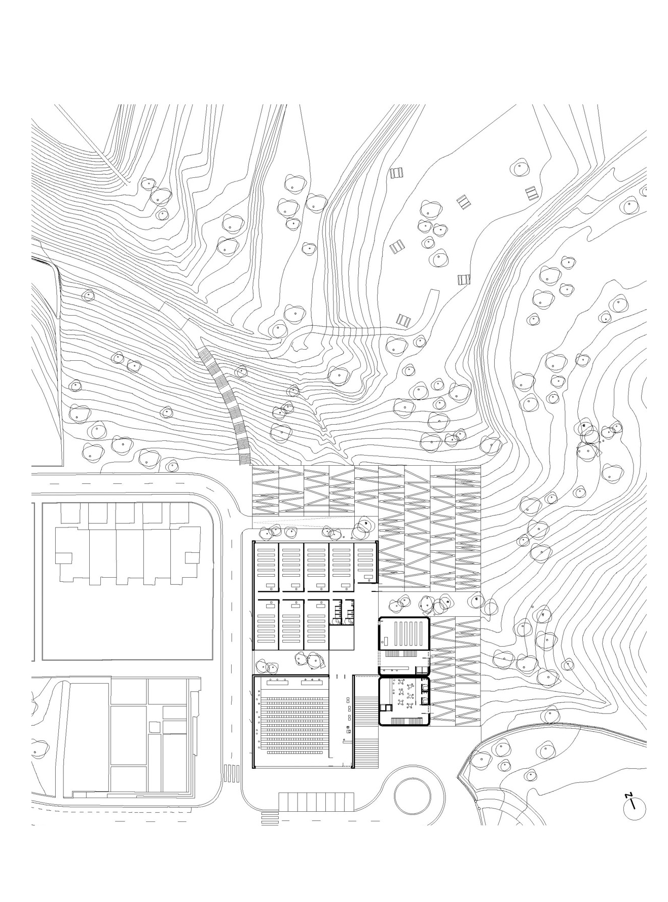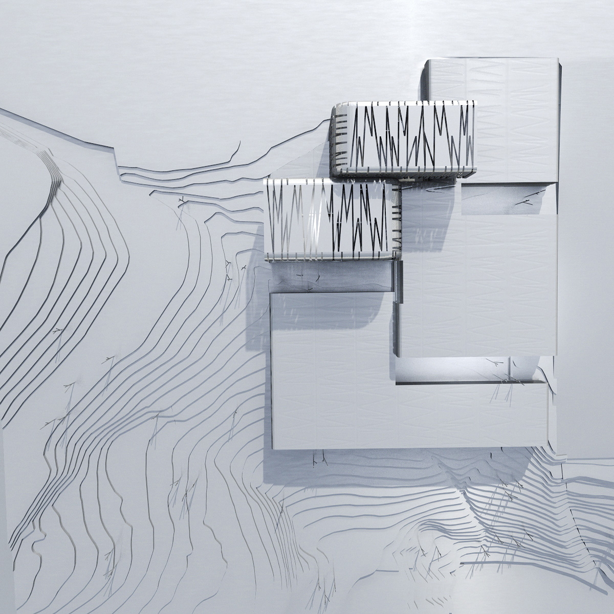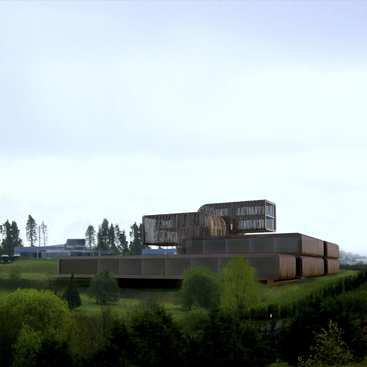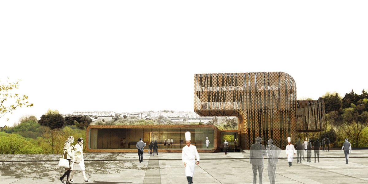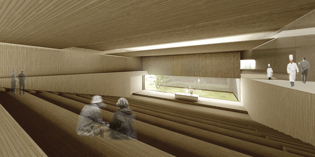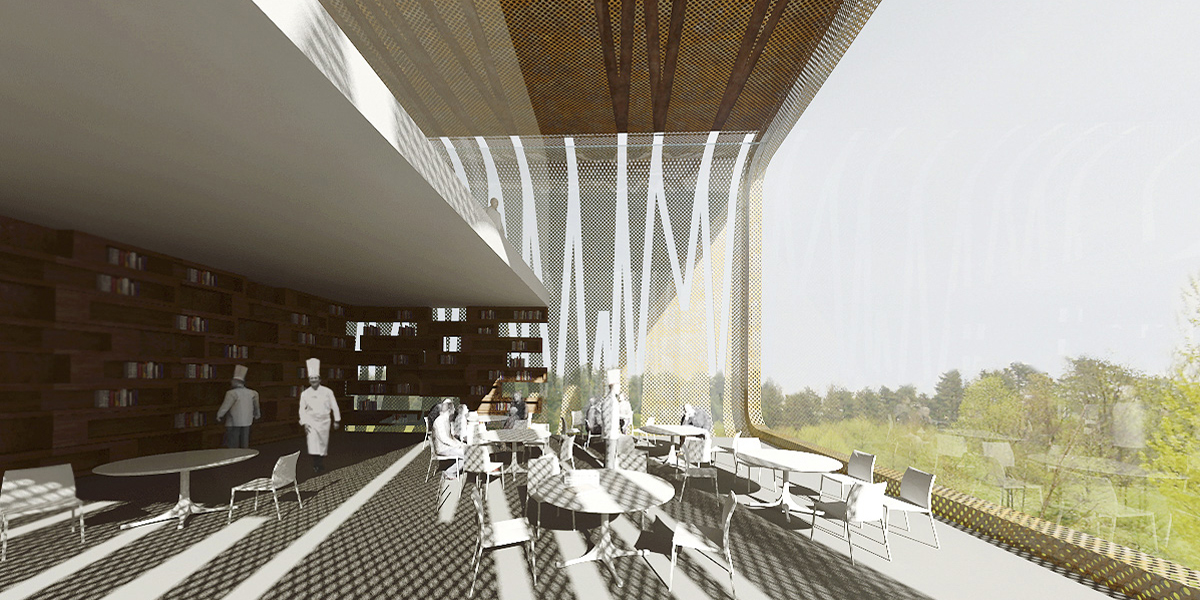Desde el conocimiento de la metodología esencialista de una vertiente del minimalismo y su voluntad fundacional, pero sin dejarnos llevar por el puro método, proponemos construir una gran escultura habitable, un icono que de forma a una nueva institución de la cocina vasca. El edificio se proyecta como una sucesión apilada de dos plataformas que de algún modo se apoyan y flotan simultáneamente en el terreno para albergar el programa docente de modo versátil y flexible. Sobre ellas se yerguen dos retorcidos fragmentos que albergan el restaurante y la biblioteca. En una localización tan privilegiada el objetivo no es otro que ver y ser visto, una cocina trasparente que disfruta del entorno.