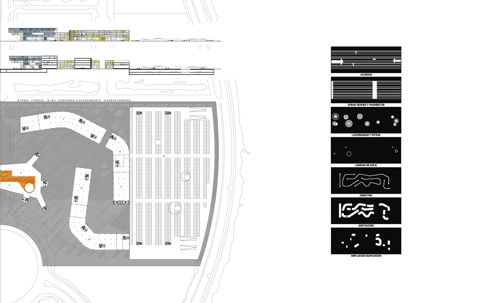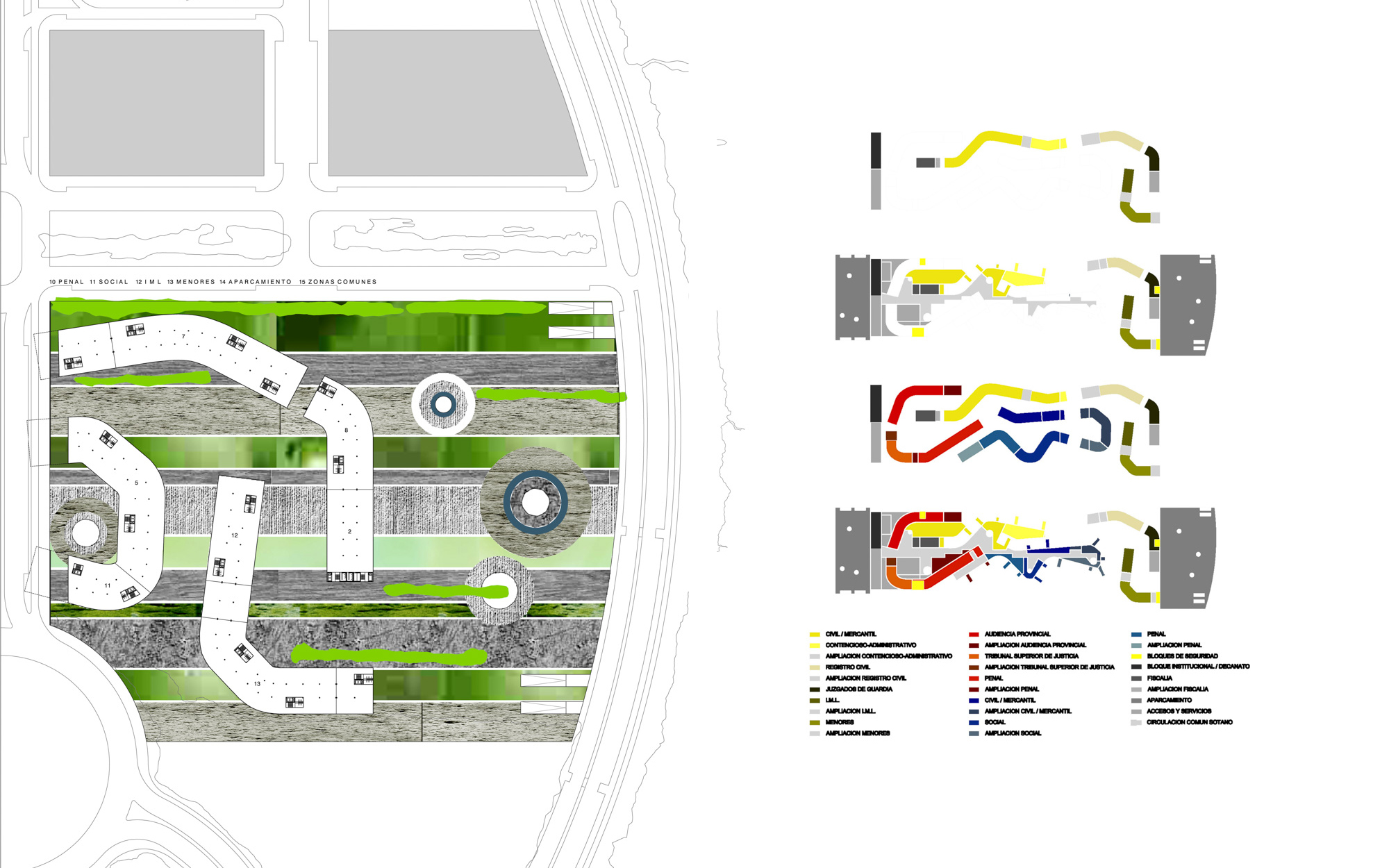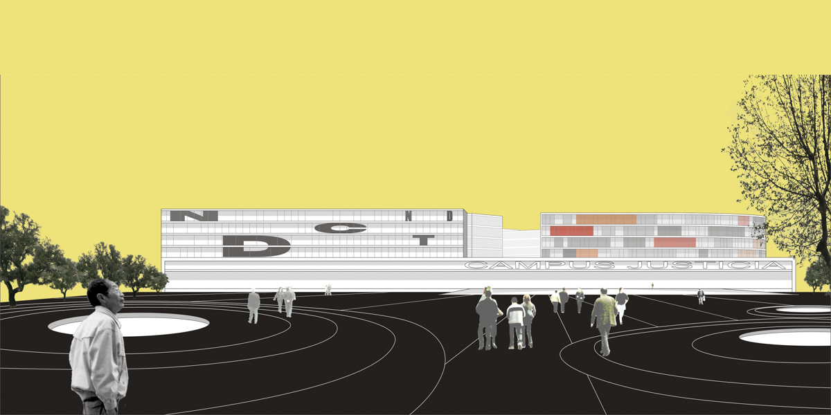 La oportunidad de reflexionar sobre la construcción de un fragmento de ciudad de la dimensión del propuesto permite investigar sobre la naturaleza de la ciudad misma. En ese sentido, el proyecto profundiza en los valores esenciales que constituyen la formalización de la ciudad; por ello nuestra propuesta no pretende sino la construcción de una ciudad dentro de la ciudad. Una Ciudad de la Justicia construida desde la reutilización de conceptos primigenios: Accesos-Puertas, Calles y Plazas, ante la posibilidad de crear un nuevo centro vivo, construido ex-novo.