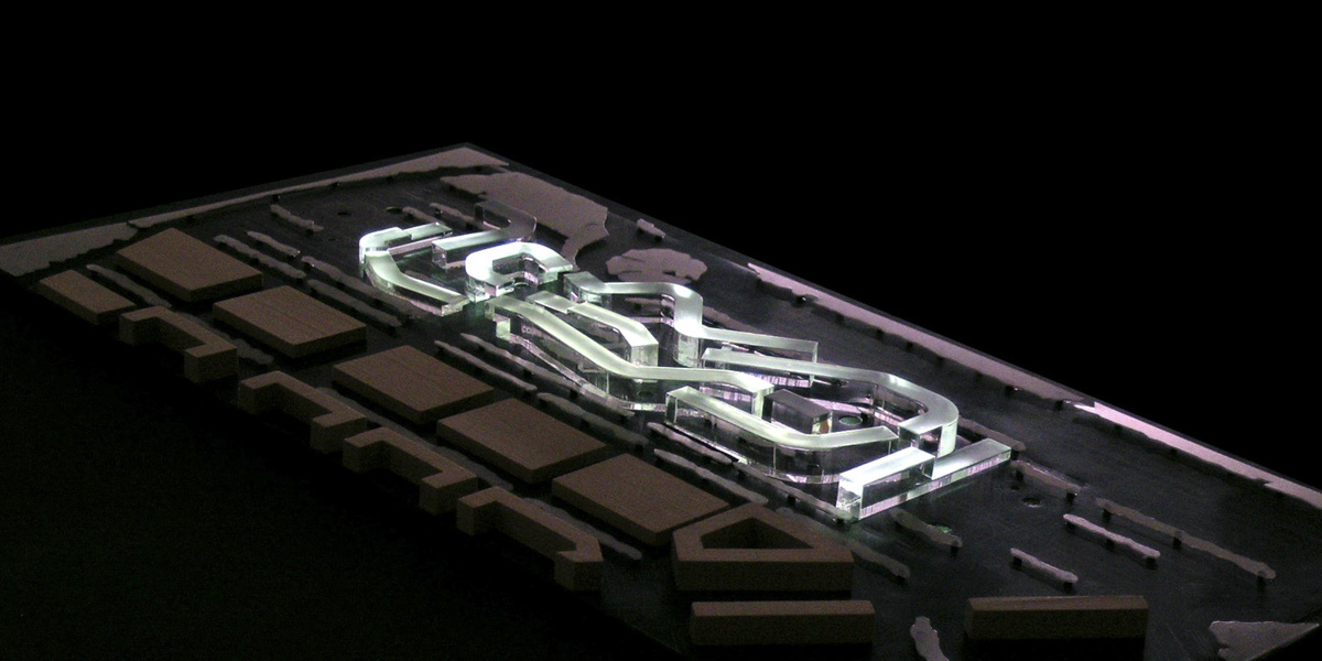 Se trata en definitiva de crear un conjunto a modo de icono urbano para el nuevo Madrid. Un icono urbano de gran escala, foco de referencia desde el intercambiador, que sintetice una manera de entender la ciudad contemporánea. Su definición se basa en el empleo de trazos o caligrafías como si de fibras se tratara, mediante el empleo de crujías continuas de 25 m. de carácter polifuncional con vacíos centrales: no hay que olvidar que las caligrafías, entre lo figurativo y lo esencial, tienen la virtualidad de reconstruir conceptos complejos a través de logotipos de empleo afortunado.