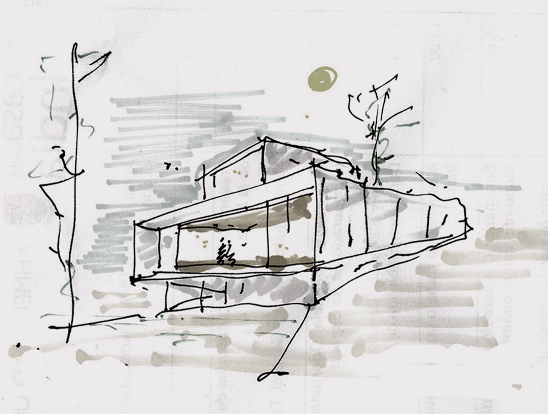 – Un mirador de hormigón con patio –