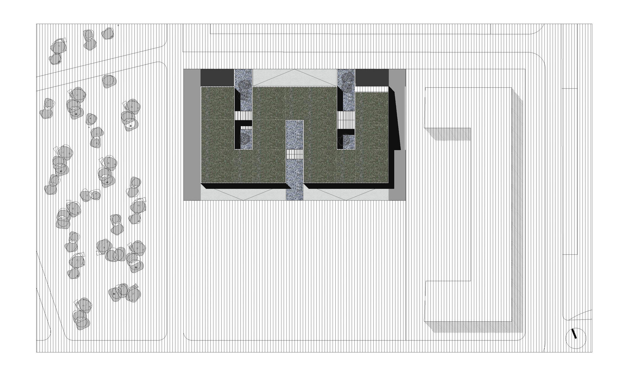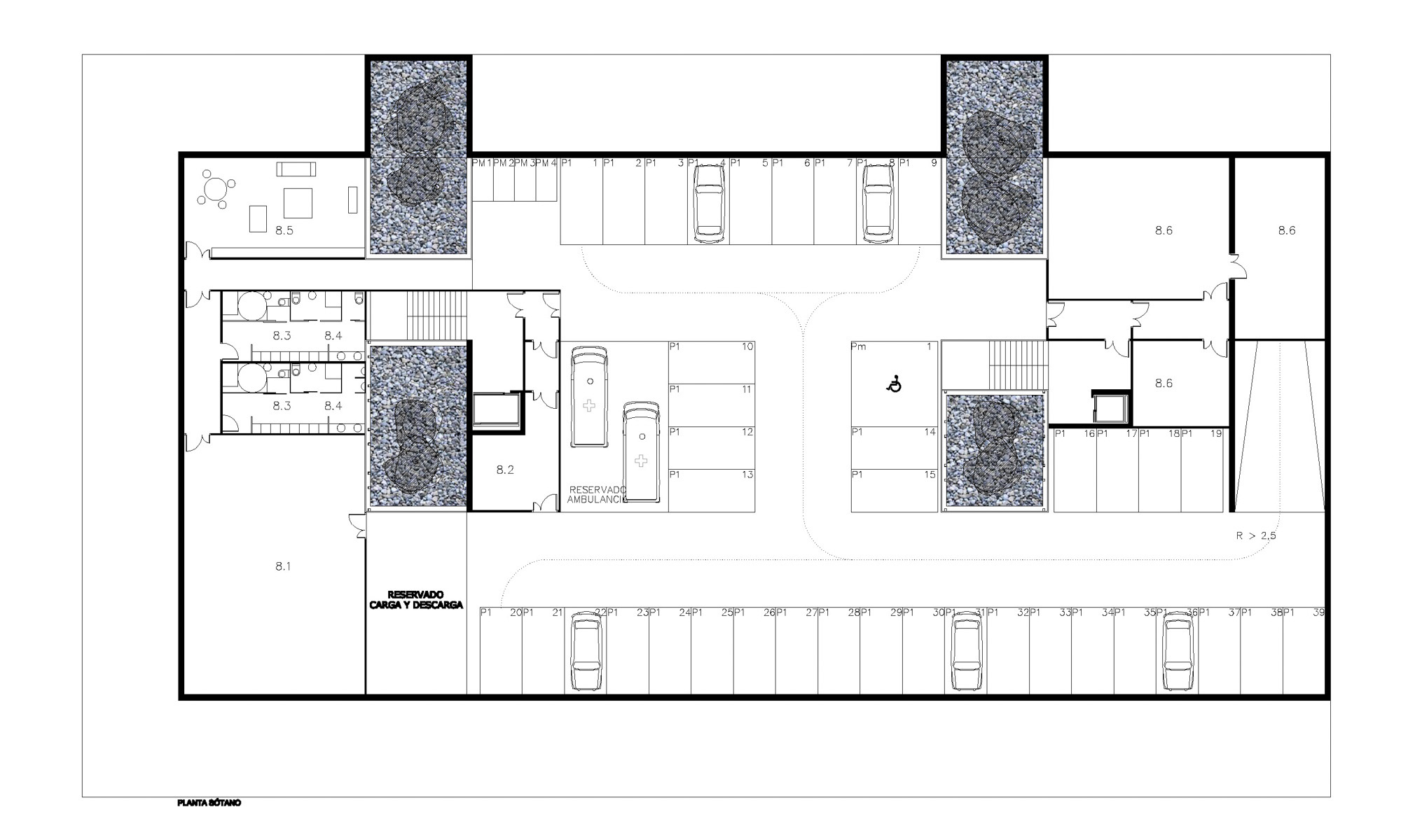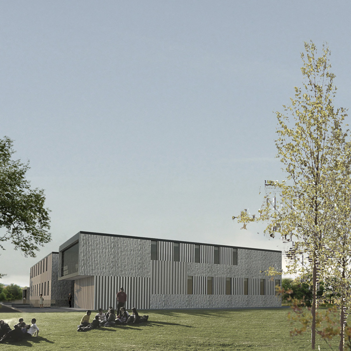 Se ha proyectado un edificio continuo, plegado sobre sí mismo, de dos alturas, consiguiendo con ello una gran extensión de fachadas con la totalidad de los espacios iluminados y ventilados naturalmente al exterior o a patios abiertos a fachadas. Los accesos públicos están claramente marcados en las fachadas y los límites bien protegidos.