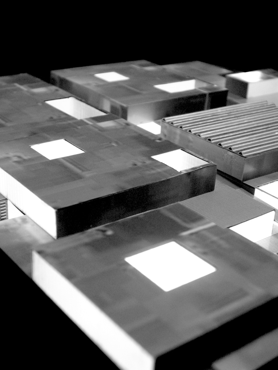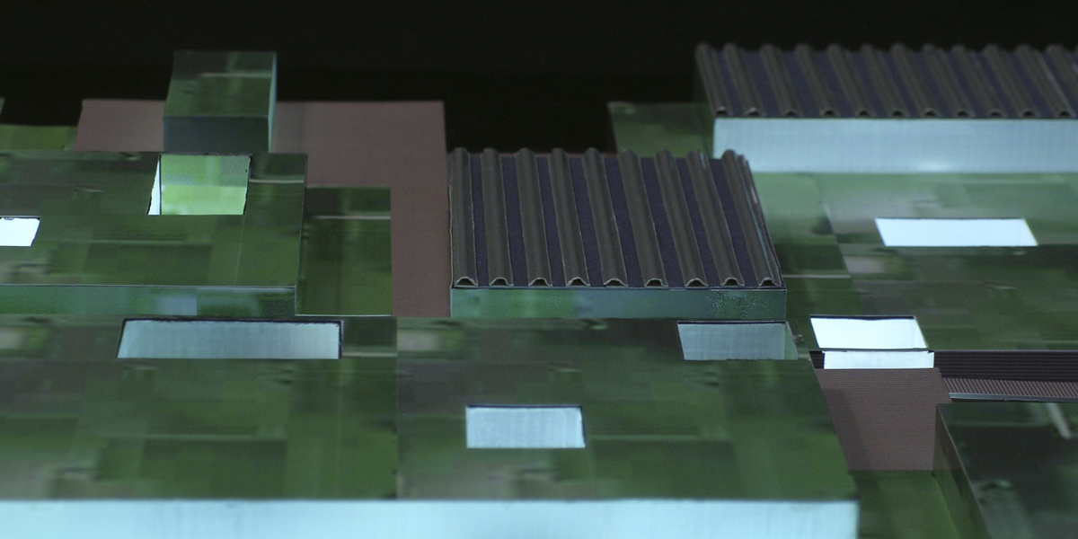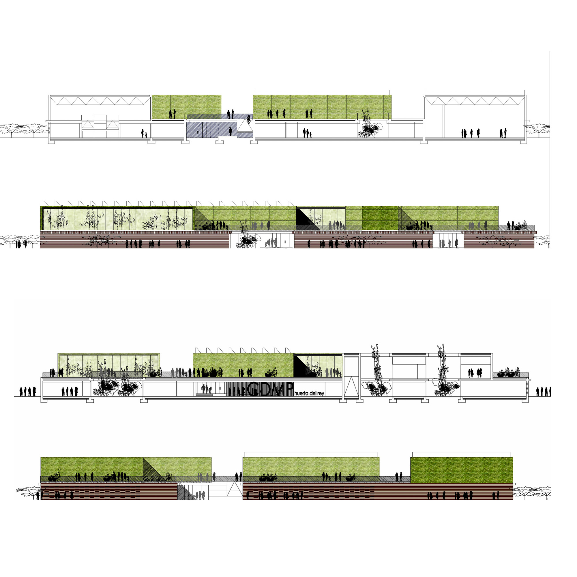 La morfología escogida plantea una cubierta plana ecológica de última generación acabada en una plantación vegetal que retiene el polvo y la contaminación, es absorbente acústico con efectos refrigerantes y se riega con el agua recogida sobre la cubierta. Los volúmenes emergentes de planta primera son desarrollados como muros vegetales ecológicos y planos de doble vidrio de seguridad serigrafiado, de baja emisividad, con cámara de 50cm. que alberga aire recirculado en ciclos de invierno y verano,”sunspace” complementado al sur y al oeste con una protección de celosía de viruta de madera reciclada.