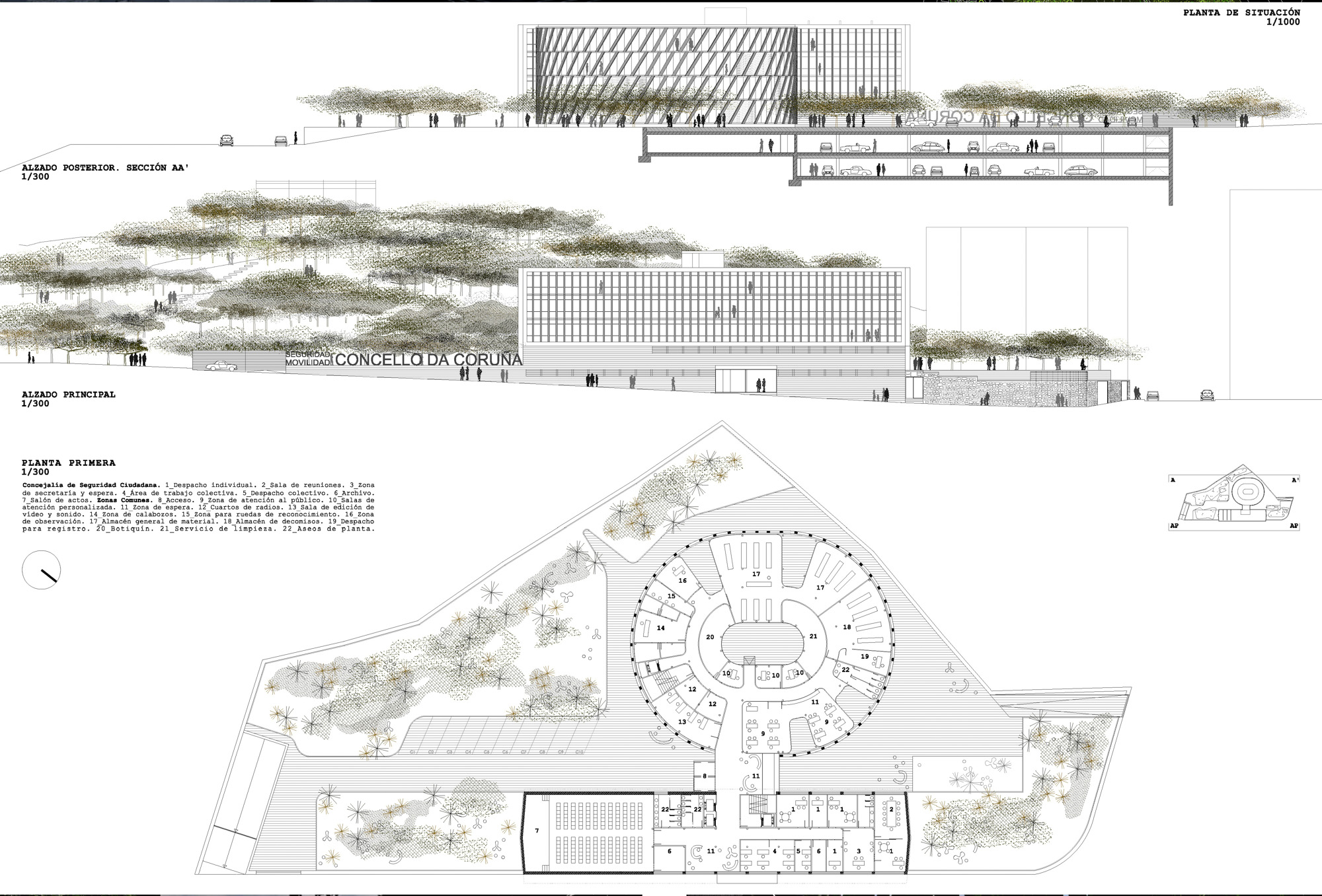 - 1º PREMIO EXEQUO. Concurso de ideas, con intervención de jurado, de nuevas dependencias del área de seguridad y movilidad del ayuntamiento de A Coruña.