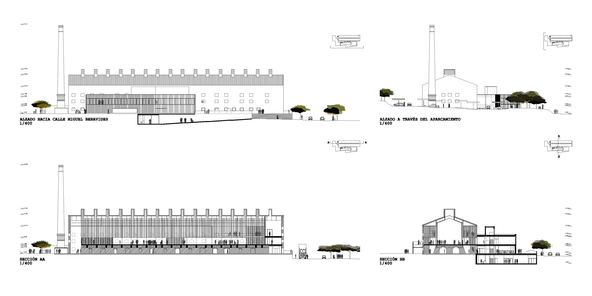 Simultáneamente, el acceso natural se realiza, por un lado, desde la calle Miguel de Benavides, a modo de gran PLATAFORMA que conecta la totalidad de lo construido, incluyendo la comunicación con el Instituto de Secundaria Virgen de la Calle. Por otro, desde la Avenida de Santander, se gestiona el acceso de mercancías