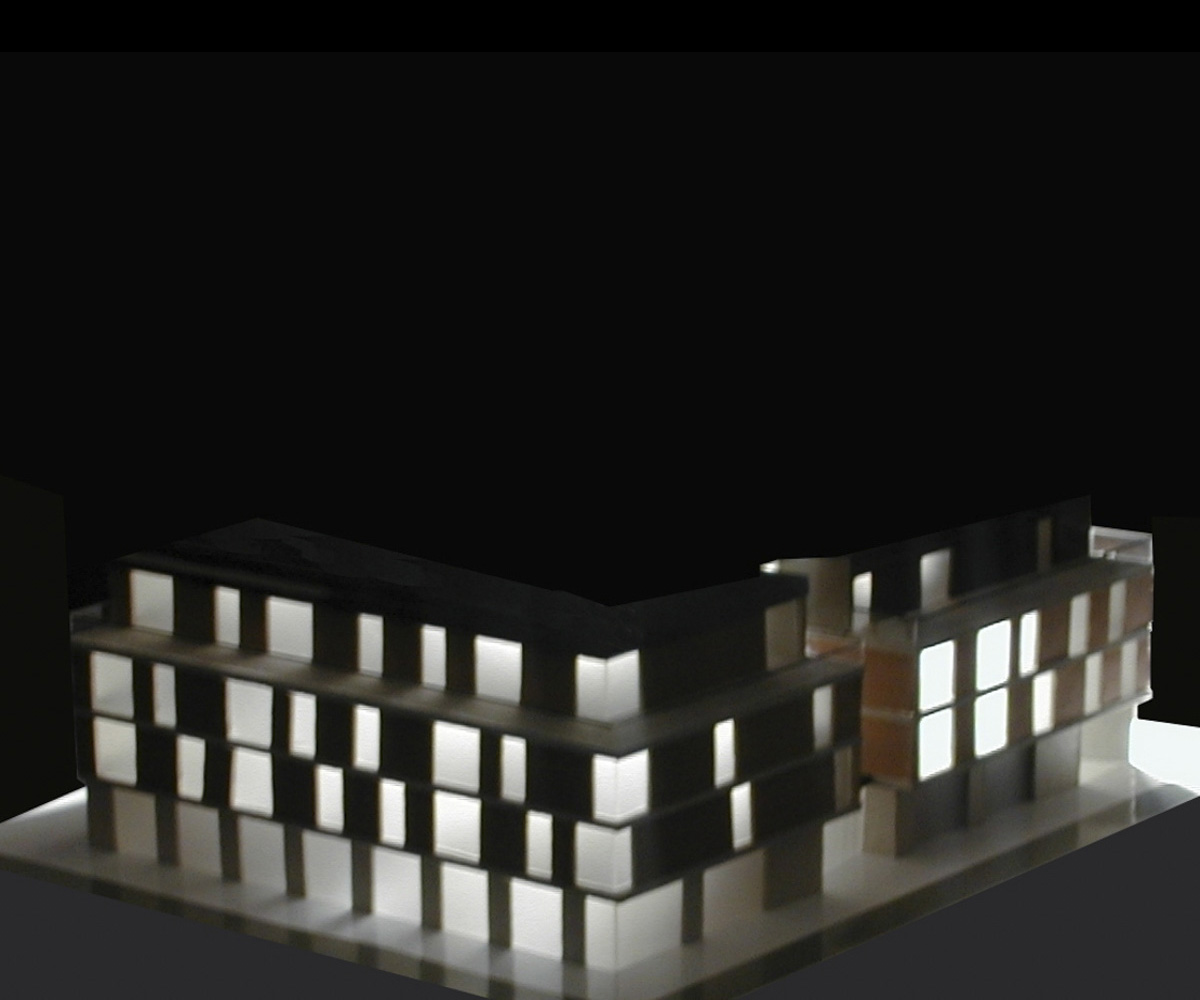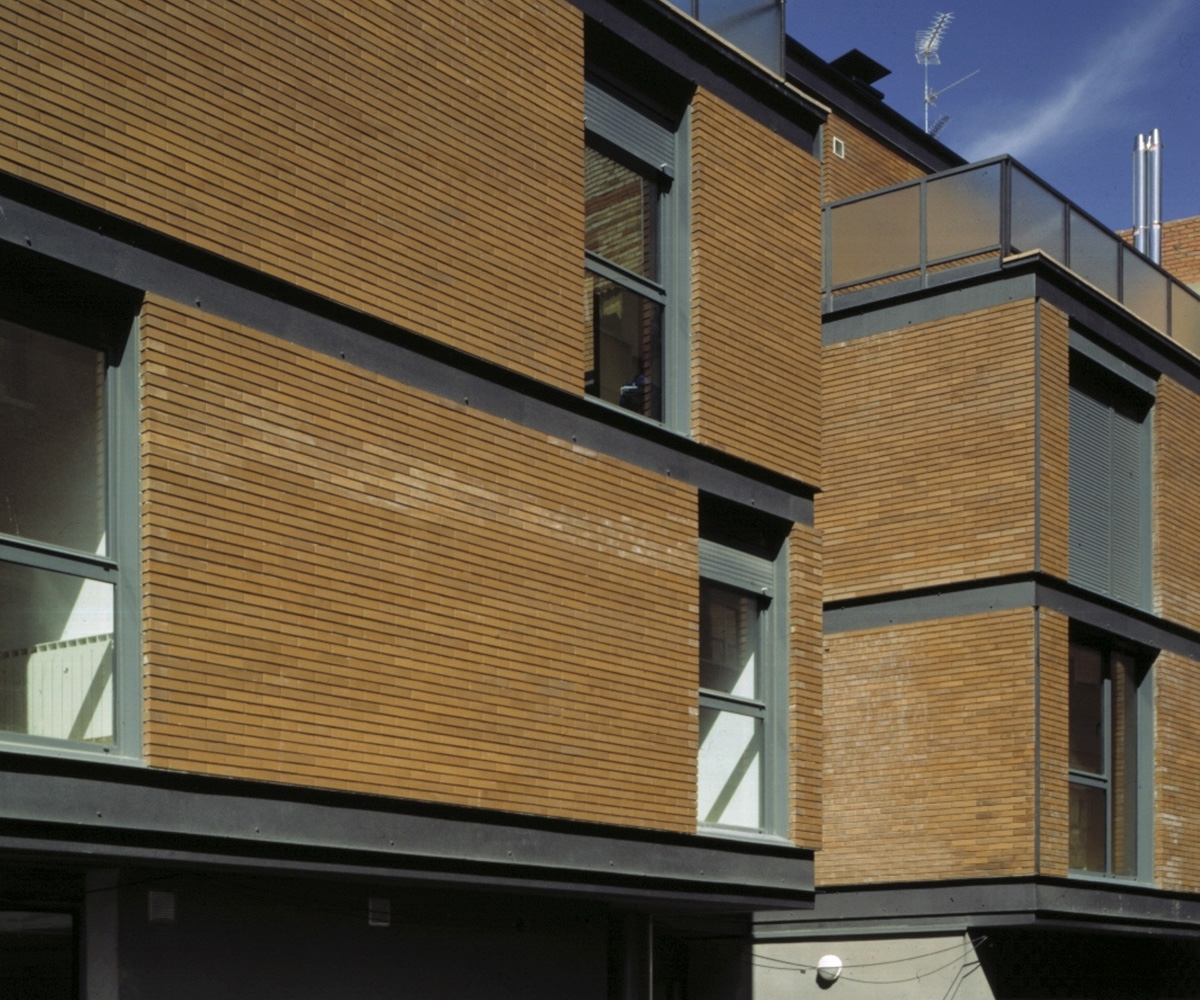 El sistema tipológico de viviendas entre medianeras, con doble crujía a calle y a patio, aparece como un estereotipo perfectamente normativizado; no obstante, el proyecto pretende asumir en este caso, tanto la singular situación de esquina de que se dispone, como la necesidad de una intervención «volumétrica» que permita paliar la falta de «caracterización» y «cualificación urbana» que el entorno tiene en la actualidad.