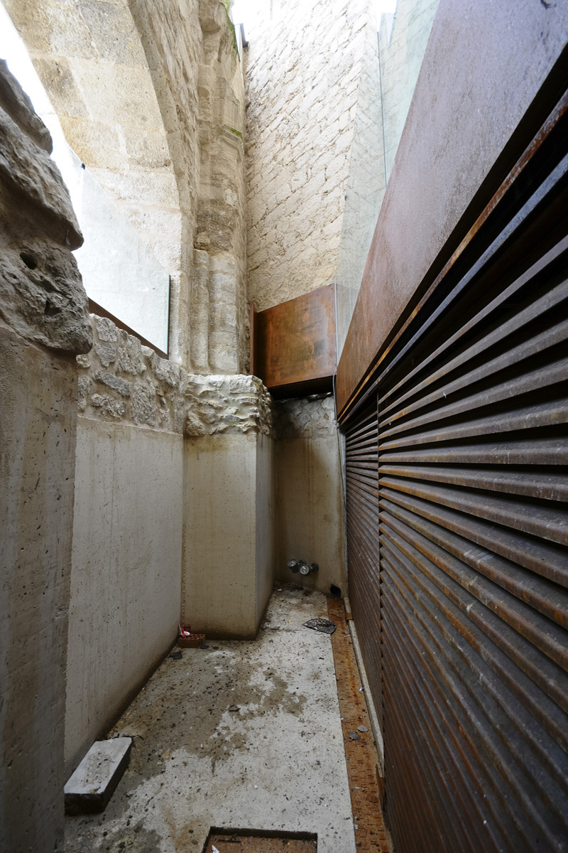 -El único acceso posible desde la Iglesia al interior de la torre es un patio de servicio situado en la localización de la nave principal de la primitiva fundación.