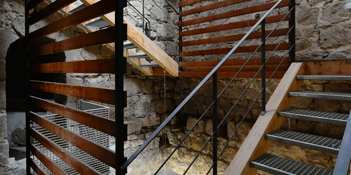 -Eliminar la totalidad de elementos arruinados y extraños al carácter de la obra que se encuentran en su interior (escalera de caracol de madera, forjados arruinados, forjados de hormigón, etc.)