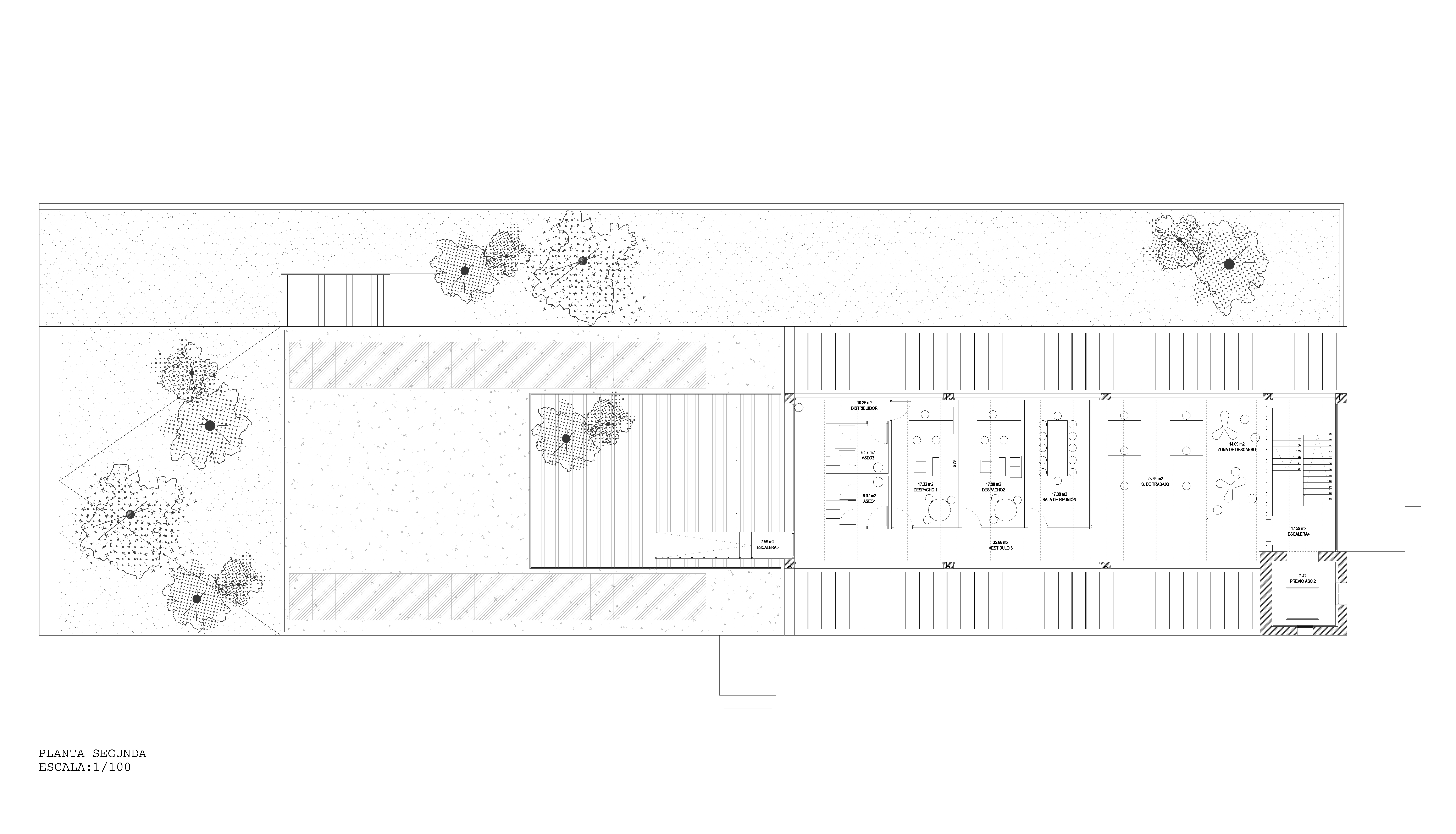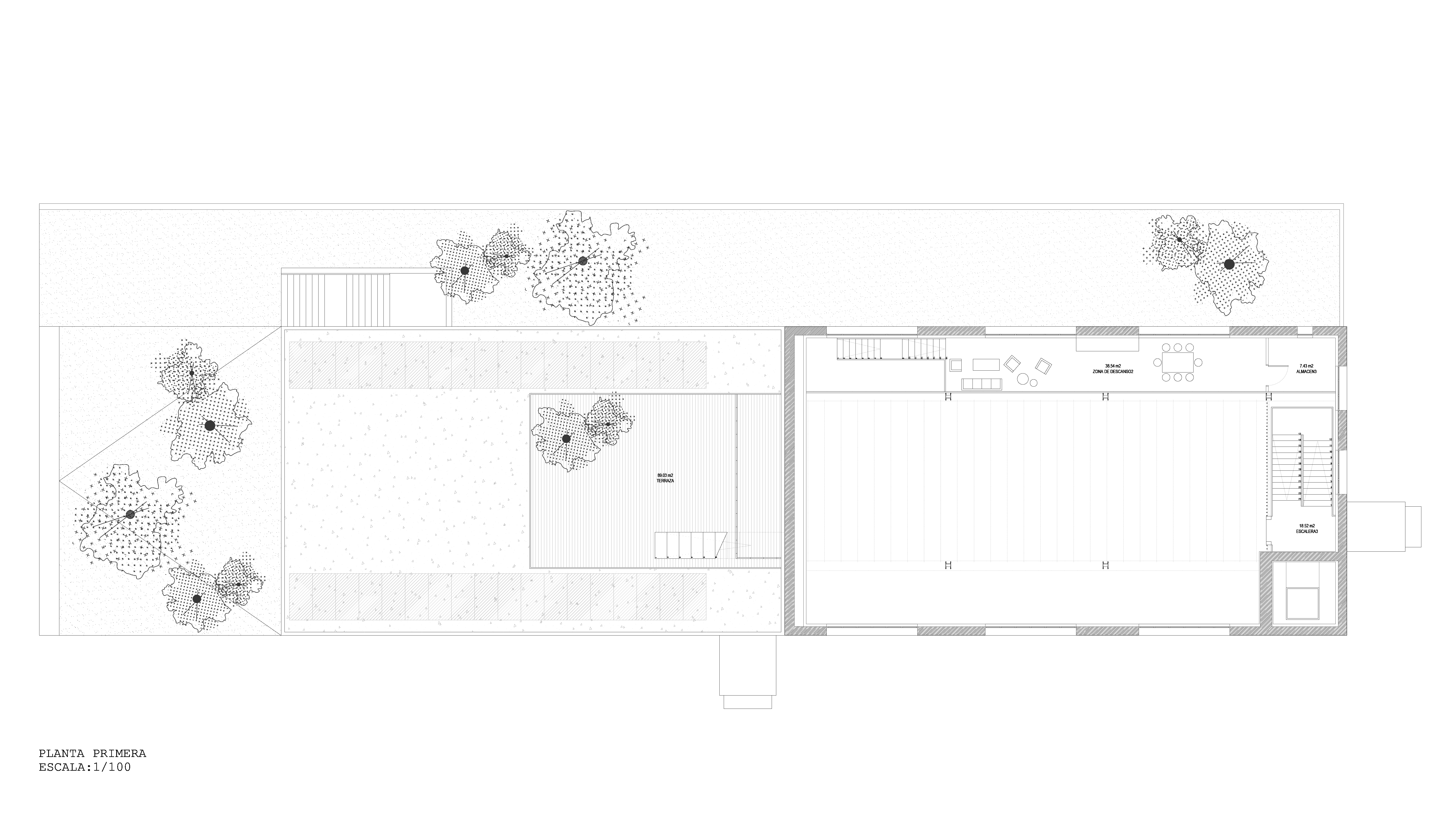 Se mantiene la nave del secadero de pieles que formaba parte de la estructura original del conjunto. Así como la terraza cubierta de remate de la edificación.