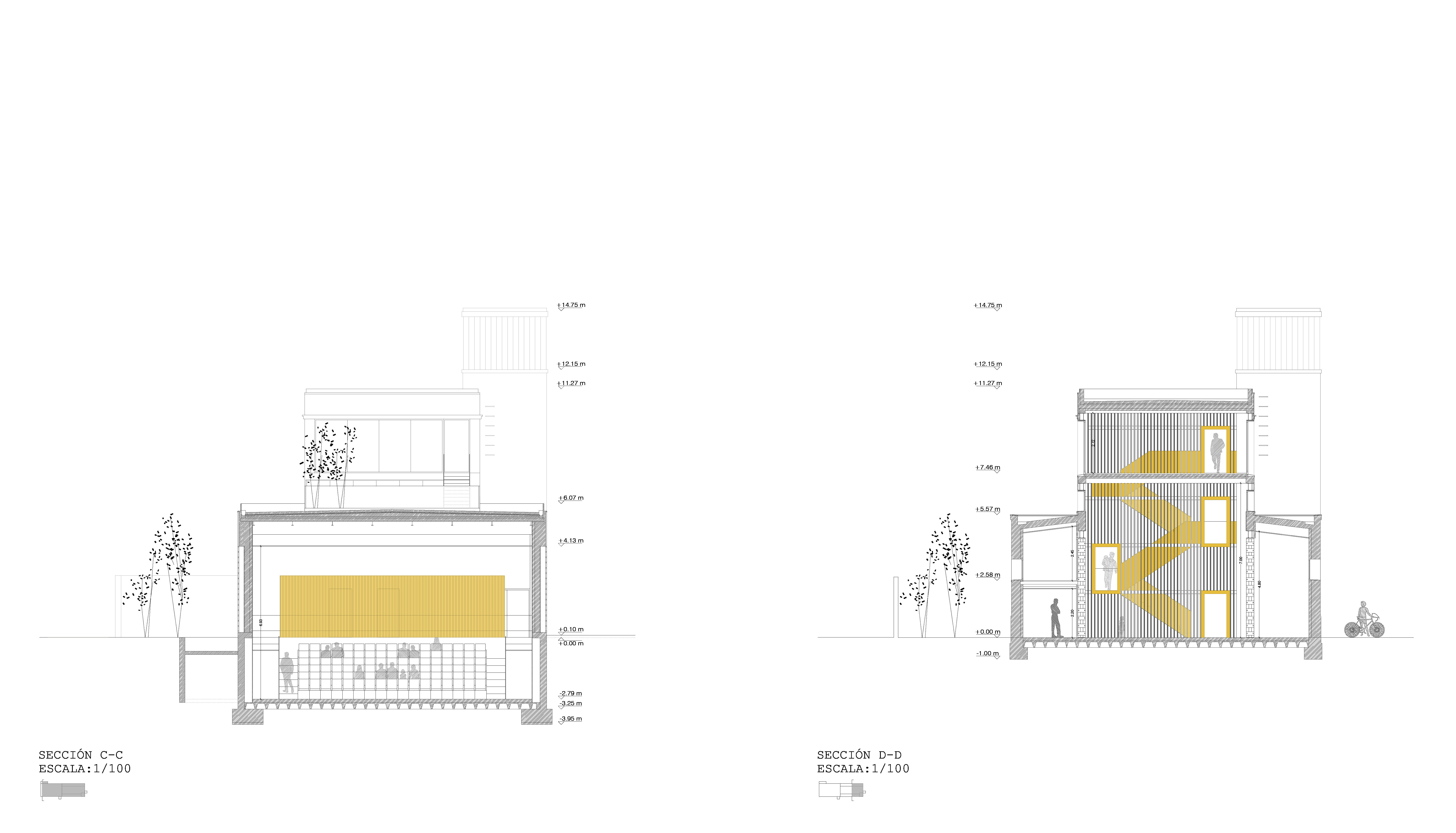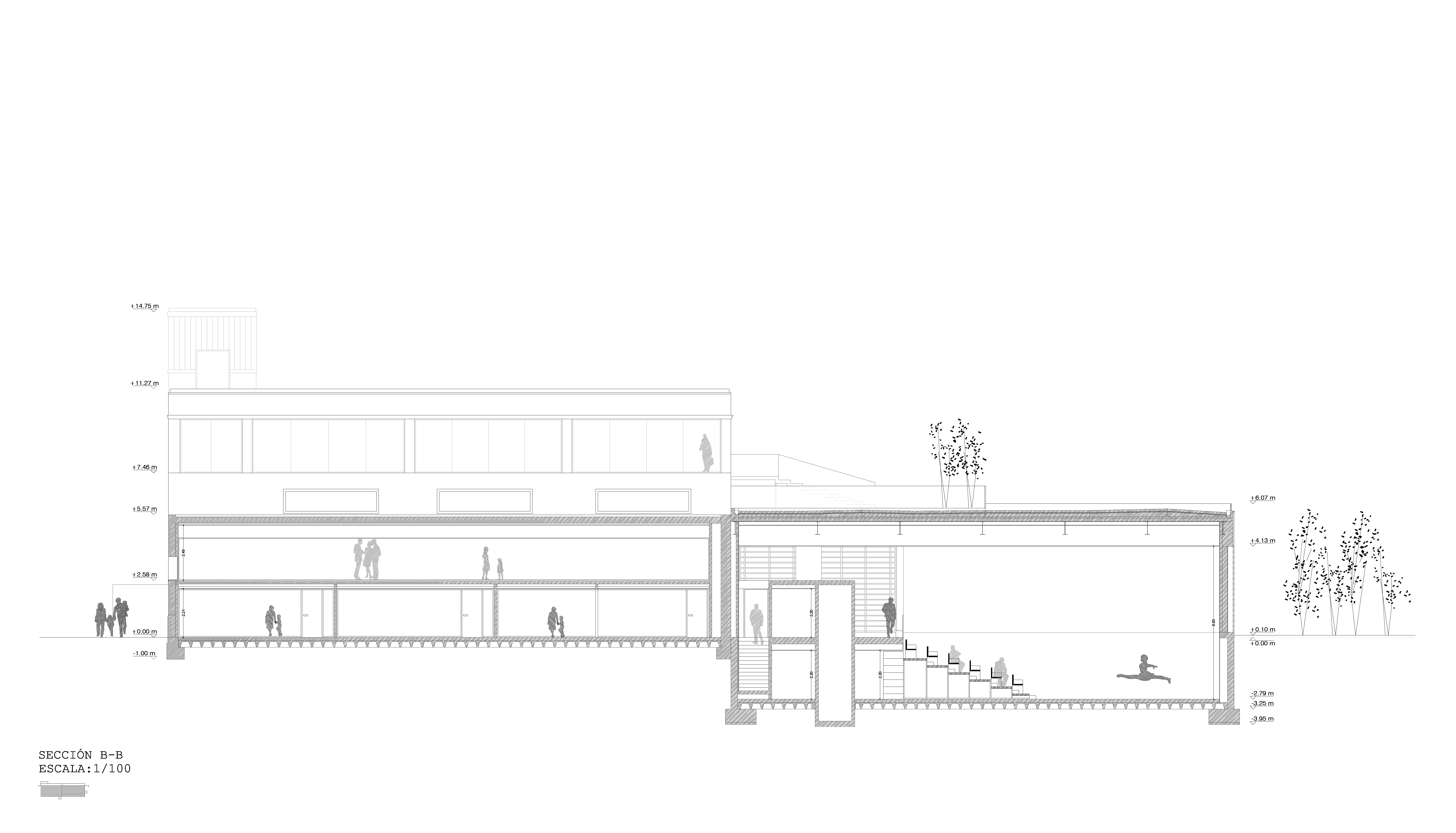 En este proyecto se ha tratado, tal y como se contemplaba en la memoria de la propuesta presentada a concurso en su momento, de integrar una parte de los edificios existentes en el antiguo matadero mediante su rehabilitación, con la incorporación de un nuevo volumen siguiendo los criterios ya experimentados en el resto del conjunto del antiguo matadero experimentados en proyectos anteriores.