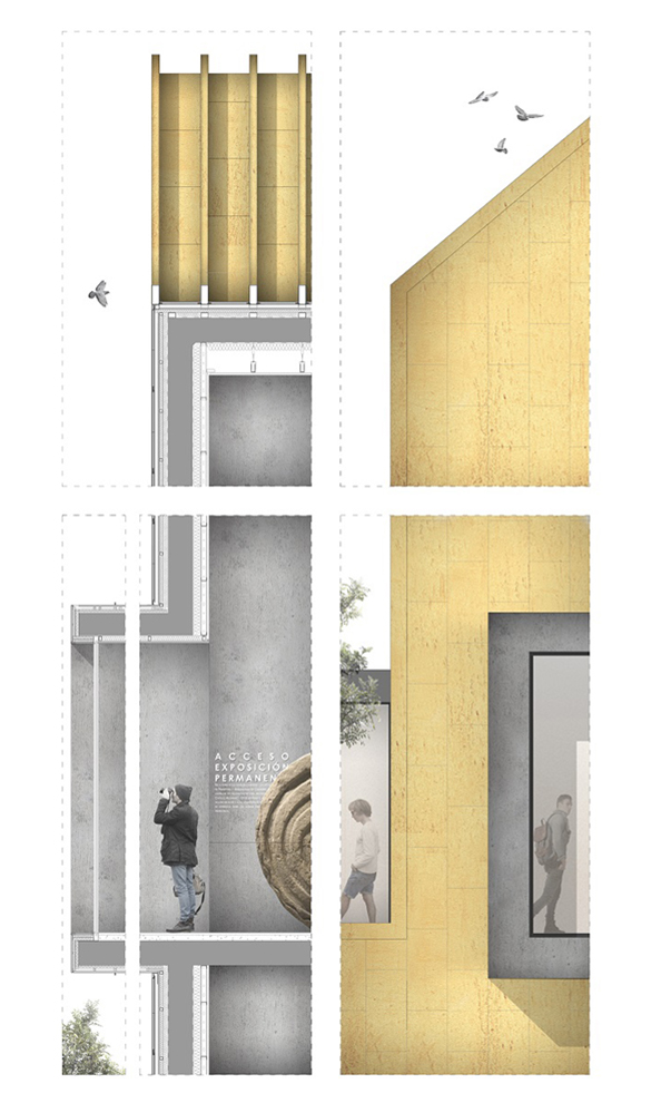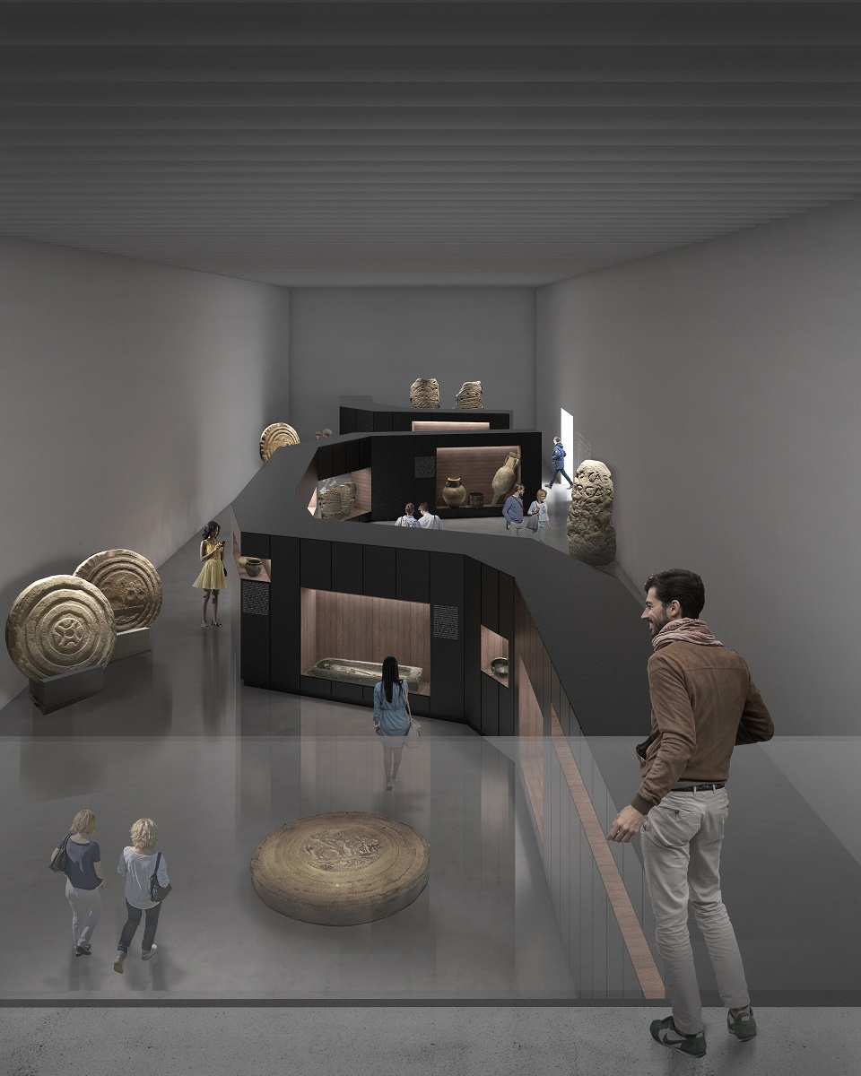 El espacio expositivo propuesto tiene una base neutra donde todo proceso de extrañamiento o identificación entre objeto y sujeto. En este sentido cobran especial interés los elementos mueble, aquel sobre los que recae el proceso de mediación entre el bien a exponer y la escenografía colaborando en la construcción de un recorrido con sentido didáctico, desde la empatía de transmitir una experiencia lúdica y cultural