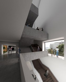 La escalera principal articula los vacíos y genera una poética en la que el valor de ascender se asocia a ascender en conocimiento haciendo suya la idea ilustrada de que una institución como el museo transforma el alma del visitante.