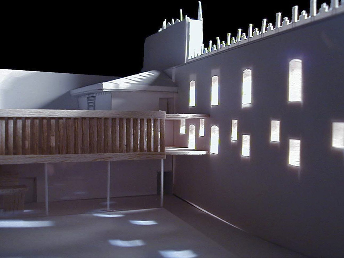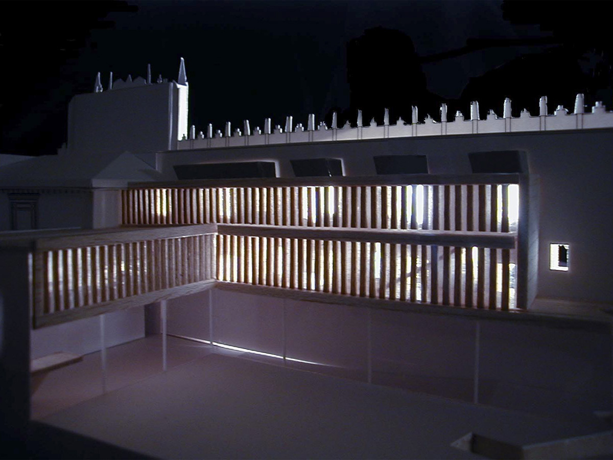De aquí la importancia del criterio de reversibilidad , que afectará a todas las actuaciones, y en especial a aquellas enfocadas hacia los elementos singulares, de modo que ninguna pueda considerarse definitiva en el tiempo. Para ello se pondrá una especial atención a las líneas de unión entre lo existente y los nuevos elementos construidos a partir del proyecto, al mismo tiempo que el propio proyecto ha sido concebido para no modificar las estructuras esenciales del conjunto histórico, de hecho, en la investigación del proyecto se han reinterpretado determinadas situaciones espaciales o elementos particulares de cuya existencia existen datos históricos documentales. Tal es el caso de la galería que se desarrolla sobre el muro de la entrada, o de algunas divisiones de las estancias pertenecientes al claustro, o de los huecos de luz, que tanta importancia tienen en la definición del espacio interior.