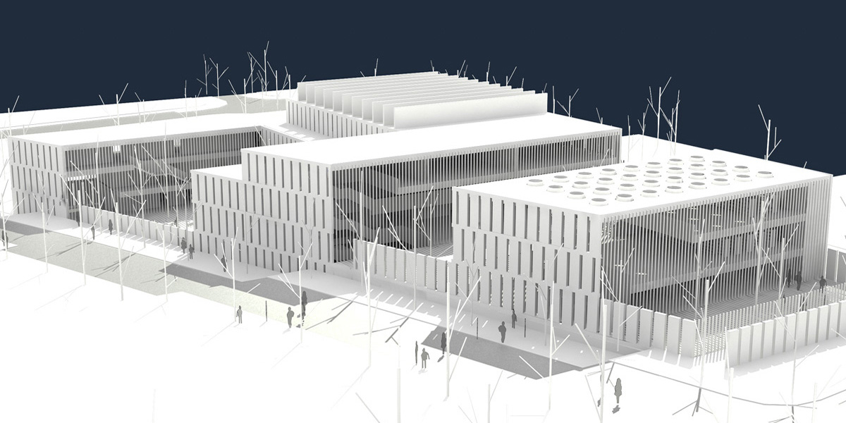 Un primer vaciado, completa el espacio público existente al sur-oeste, permitiendo una relación de vistas más natural con la IGLESIA DE SAN BERNABÉ. Un segundo vaciado, en dirección nor-oeste/sur-este, permite segregar la Biblioteca del Teatro-Auditorio, además de generar un atrio emblemático de acceso a ambos espacios, suturando la extensa ZONA VERDE EXISTENTE en la actualidad al sur-este del solar.Un tercer tallado, orientado al oeste, genera un PATIO VERDE DE EXPANSIÓN al bloque lúdico-didáctico del programa