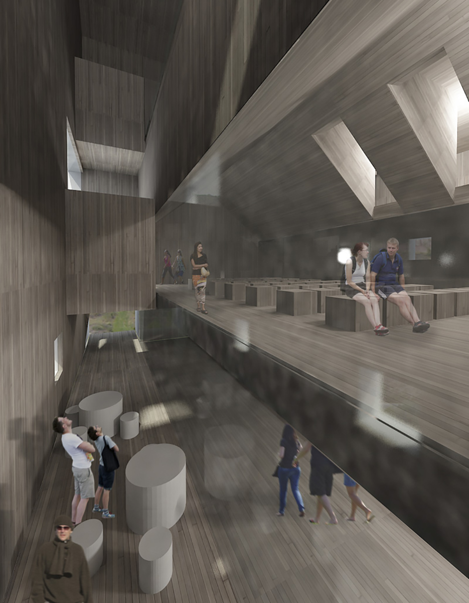 Así, el conjunto puede ser construido en 4 fases. Se ha pretendido la máxima armonización e integración en el entorno, con el objetivo de construir un paisaje. Por ello se propone la construcción de los distintos edificios en hormigón blanco tratado con moldes de silicona y una textura fina, y unos interiores acogedores de maderas nobles diversas.