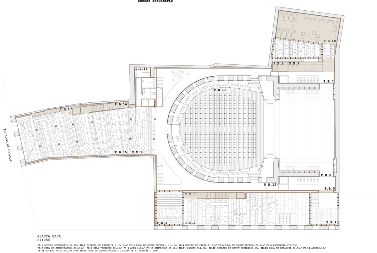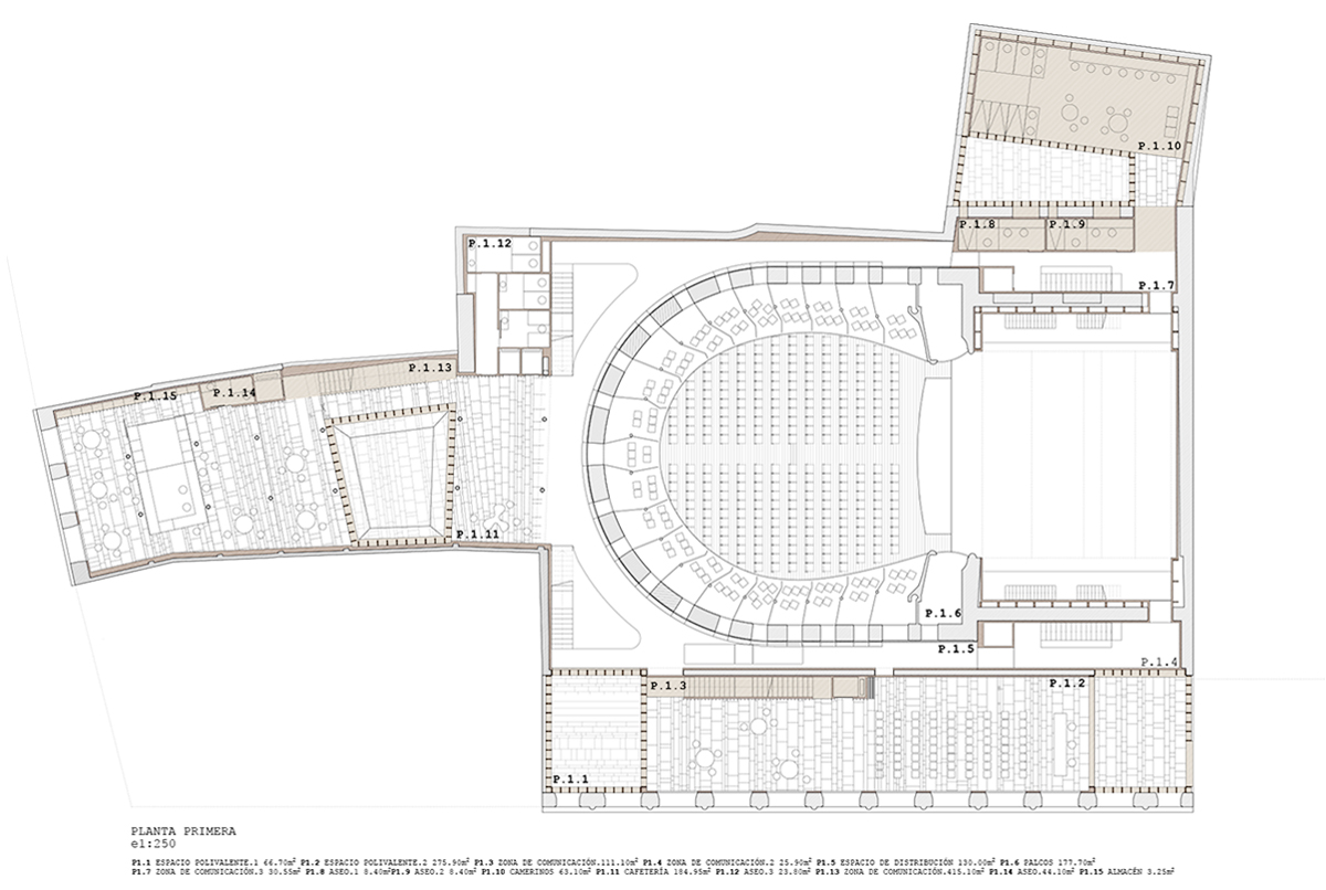 La nueva gran sala polivalente tiene un alto carácter transformable debido a un suelo móvil y al hecho de poder almacenar las butacas del patio bajo el suelo técnico. La renovada caja escénica responde a los más altos condicionantes exigidos en la actualidad. Con un nuevo peine situada a 22 metros desde la cota del escenario. En la caja escénico se organizan dos “hombros” de dobles escaleras y galerías técnicas. Por otra parte, se ha proyectado un nuevo acceso de carga y descarga que conecta directamente con el escenario desde la calle 20 de febrero.