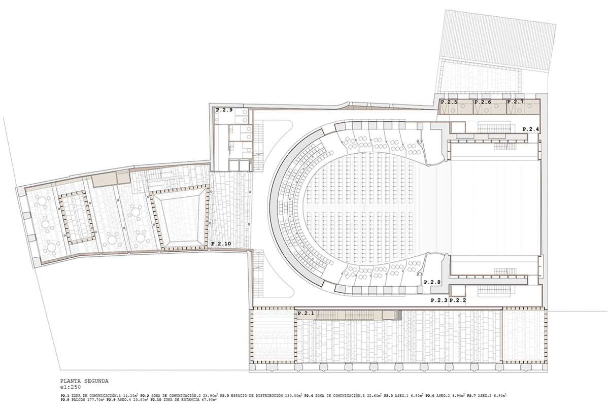 Por ello este proyecto de restauración y rehabilitación contempla en primer lugar esta disposición, aunque reacondicionada para una capacidad de 350 butacas en el nuevo teatro central del teatro. Para ello se contempla también la restauración “ad origen” de manera anastilósica de la totalidad de palcos y galerías, a fin de perder su carácter primigenio del siglo XIX.