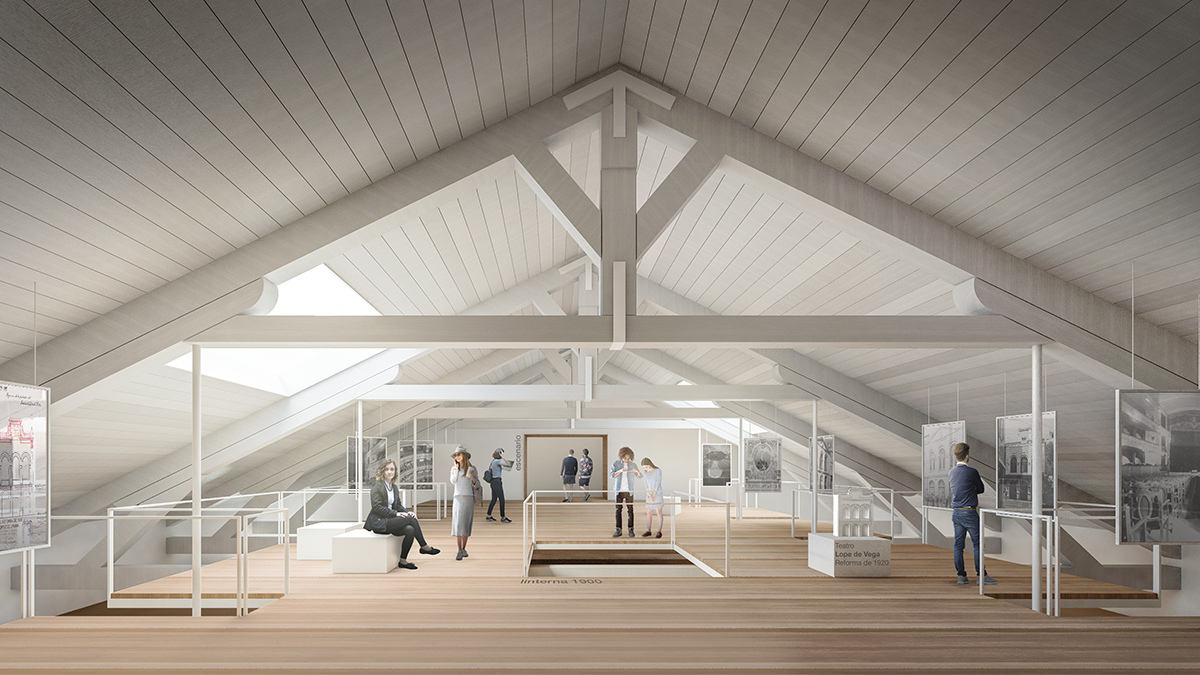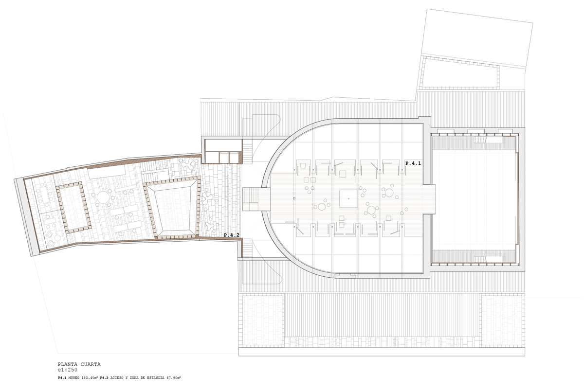 En la planta cuarta, bajo la cubierta de madera que resuelve la estructura de la gran sala, se plantea un espacio musealizado, de contenido ahora indefinido, pero que bien podía ser el museo del propio teatro. Un museo con contenido histórico del inmueble, no olvidemos que es el más antiguo de la ciudad. También podía contener una exposición permanente que a lo largo de la historia se han realizado en él, así como permitir pequeñas exposiciones temporales. Con ello se pretende completar una oferta altamente atractiva en un conjunto como gran contenedor cultural orientado a la ciudad, pero también proyectado nacional e internacionalmente.