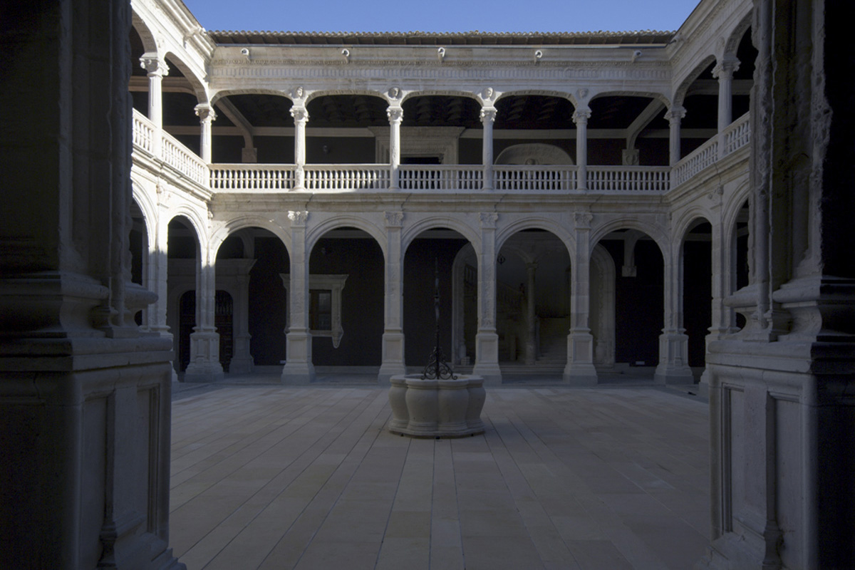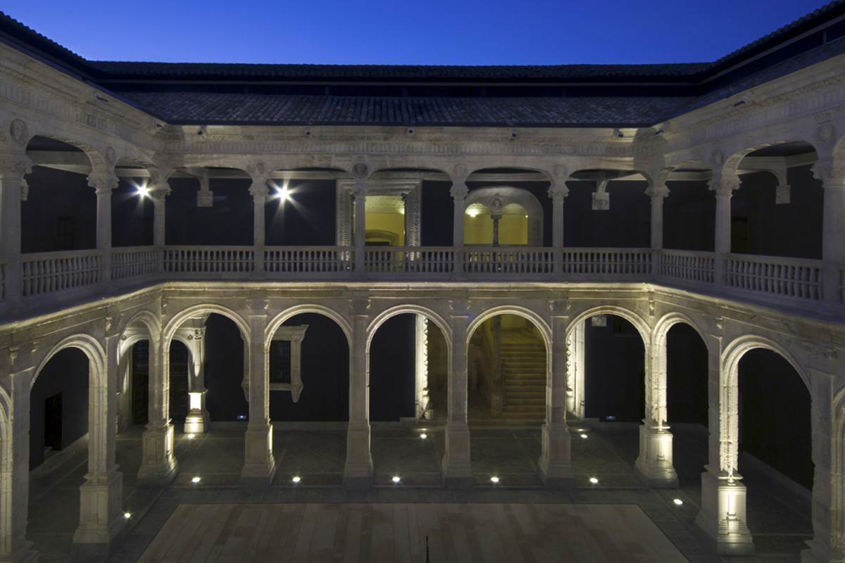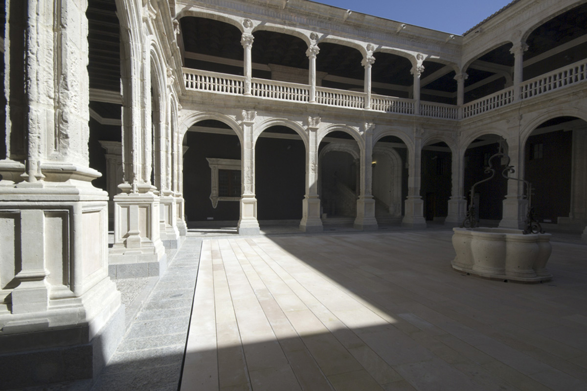 En el patio original del palacio se han acometido un conjunto de intervenciones que se pueden agrupar en dos: la restauración de los artesonados del patio, así como el de la escalera principal del conjunto, y la restauración del propio patio central del palacio.
