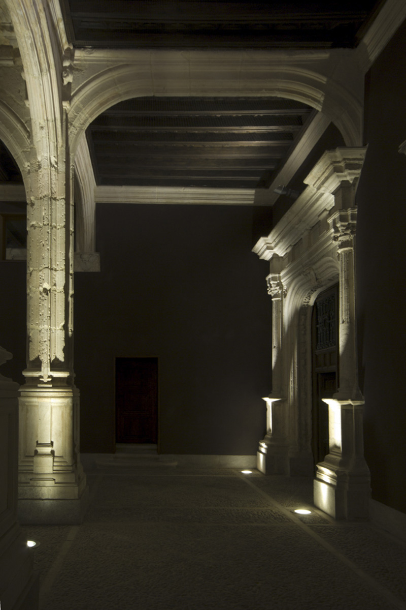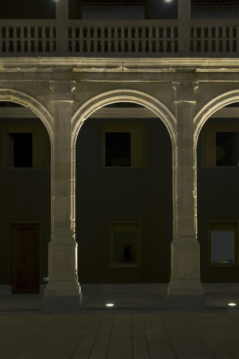 Situada en el antiguo gimnasio, el tipo de sala propuesto, es abierto, polivalente y claramente volcado al patio, entendido éste como su expansión natural. El diseño interior gira en torno a la continuidad del corredor del palacio.
