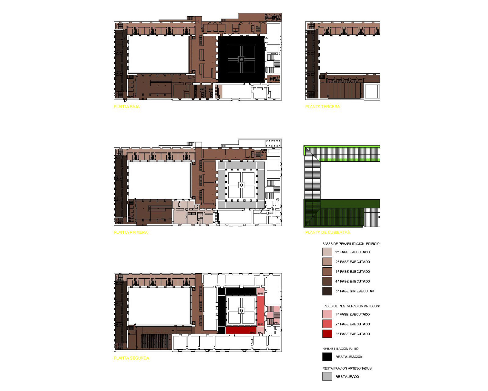 El uso a que se destina el conjunto edificado es el de una residencia con capacidad para albergar en su seno todo tipo de actividades culturales, tales como cursos, seminarios, congresos, a la vez de salas de exposiciones eventuales y permanentes, puesto que en su origen, tras la ampliación de Arenillas, el conjunto estuvo destinado a centro-residencia de formación de la Sección Femenina. La estructura podrá ser mantenida en sus líneas generales, tan sólo será necesario racionalizar las distribuciones impropias de un edificio histórico de carácter público que la anterior intervención consolidó, y adaptar todo ello a las nuevas necesidades funcionales, higiénicas y técnicas.