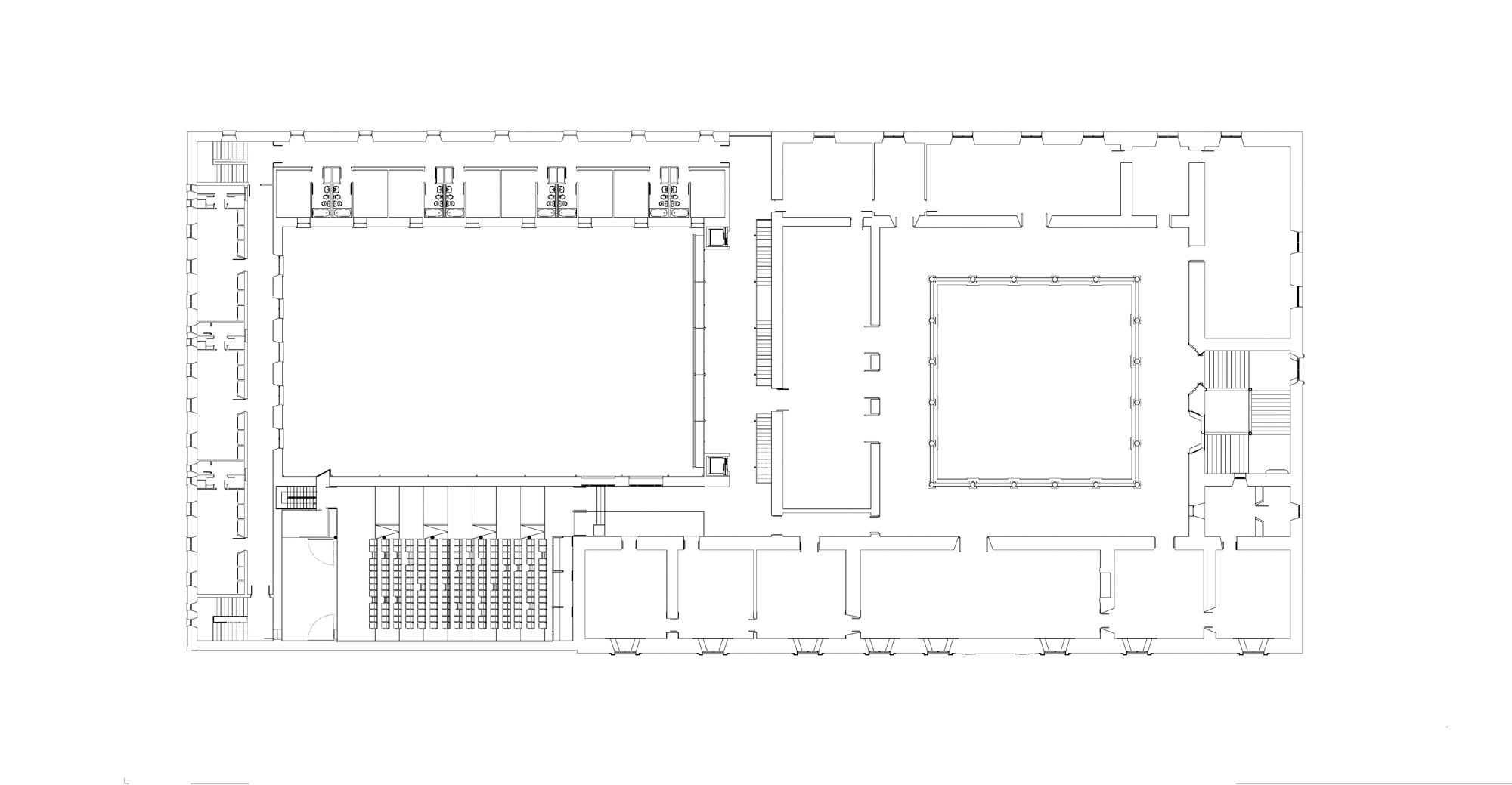 D.- Fijar como contenedor de los dos espacios de gran crujía (salón de actos y sala de usos múltiples) el destinado anteriormente a teatro y gimnasio, para ser definido como pieza común entre el uso palaciego y de residencia propiamente dicho.