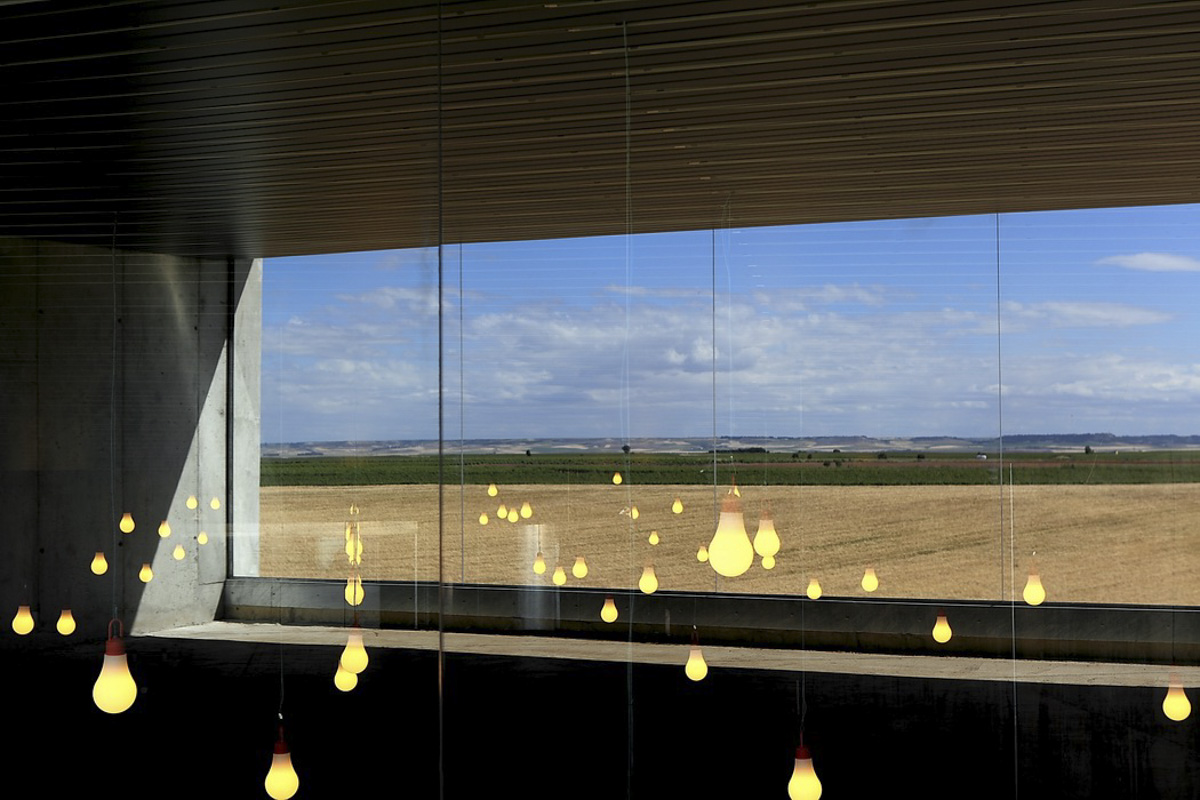 La Bodega se orienta según la directriz longitudinal del solar. De este modo, la sala de Catas, domina las vistas a los viñedos circundantes, mientras que la sala de barricas se sitúa en el entorno del patio de operaciones de la bodega.