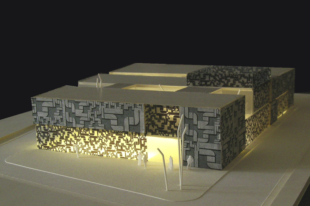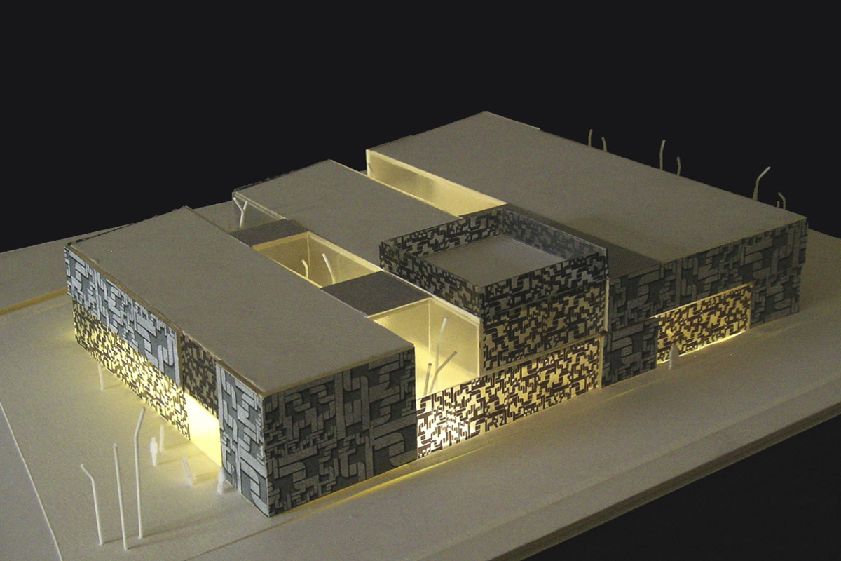 Se propone un edificio con una volumetría variada y aparentemente compacta, polarizado hacia el jardín existente en la orientación norte. Esta decisión se toma por el modo en que el edificio se presenta ante la ciudad en una zona que es de viviendas de baja densidad.