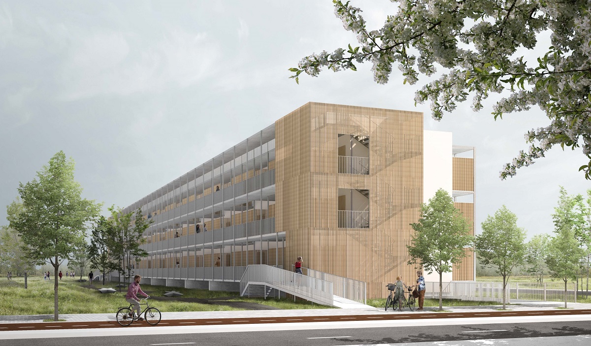 El objetivo es obtener una edificación con criterios “passivhaus” o BREAM y calificación A. Construida con materiales de proximidad y criterios modulares: Estructura mixta de madera laminada tipo “lignatur”en el cuerpo edificado y acero y hormigón en las galerías, cubierta verde visitable y cerramientos con acabado de aislamiento exterior tipo “sate”
